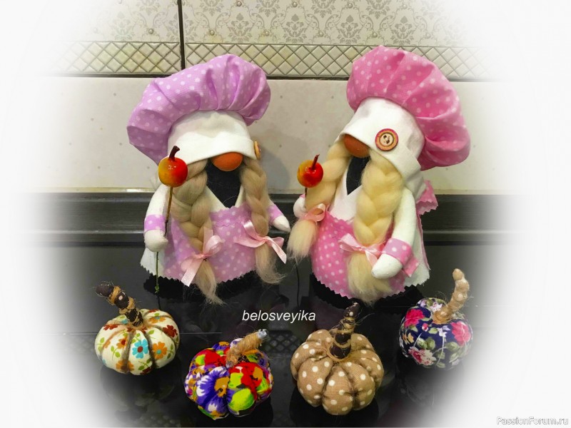 Куклы повара, рост 20 см. Пробовала сочетание определенных тканей(выбор заказчицы) с разного цвета волосами. Заказано было 2 повара,..выбор у заказчицы был из четырех.Мастер классы по этим поварам ищите в моих топиках, по моему, прошлого года ..