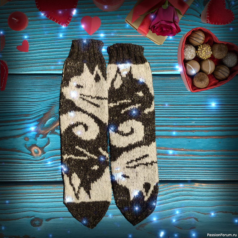 Жаккаровые варежки "КОТЫ ИНЬ-ЯНЬ"