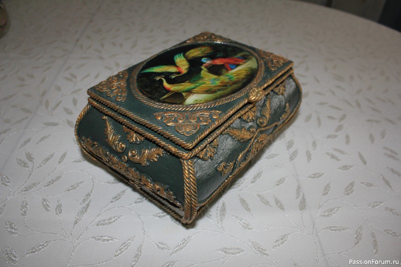Ой Людочка как долго я выбирала распечатку к первой шкатулке, а как увидела эту с жар птицей сразу успокоилась — вот она- то, что надо! Самой очень нравится эта шкатулка!
