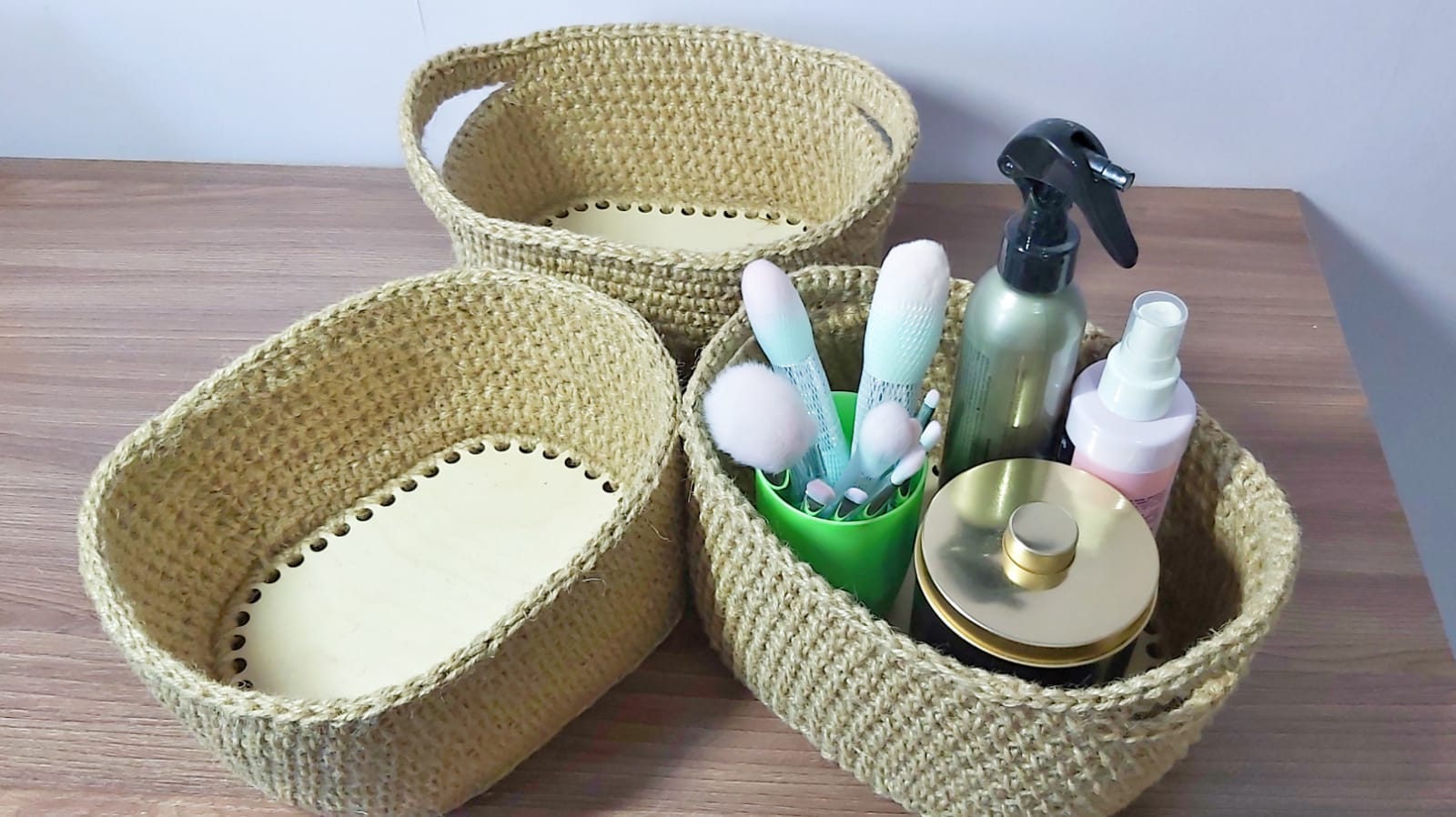 Доброе время суток! Сейчас модно иметь в доме джутовые корзины и вот не смогла остаться в стороне. Осваиваю новый для меня вид рукоделия. Решилась поделиться с Вами своими творениями. Всё просто классические корзинки. Материалы - джутовая пряжа, джутовые шнур, деревянные донышки 25*15 см.