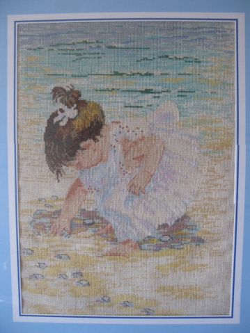 Первой вышивала девочку, собирающую ракушки . На выставке получила за эту работу второе место.