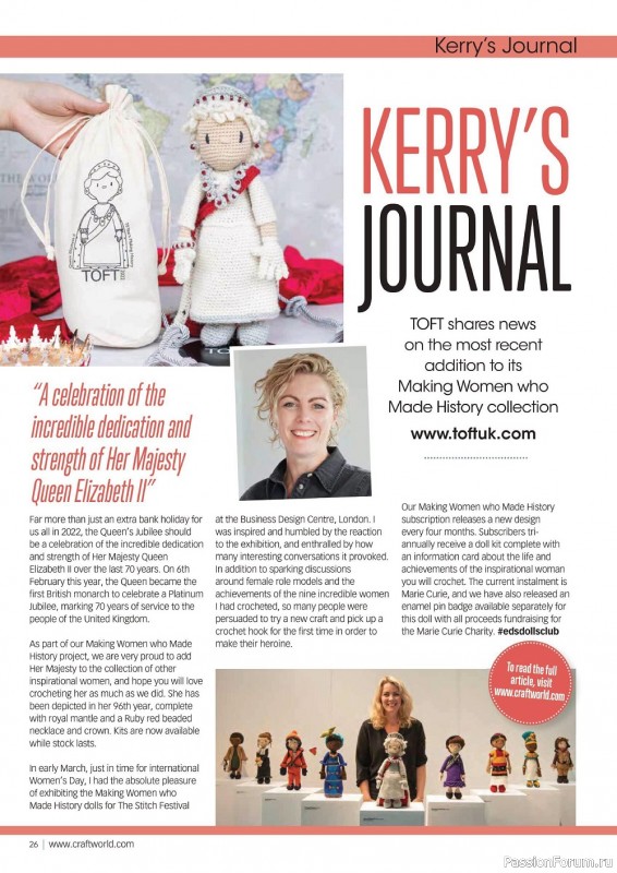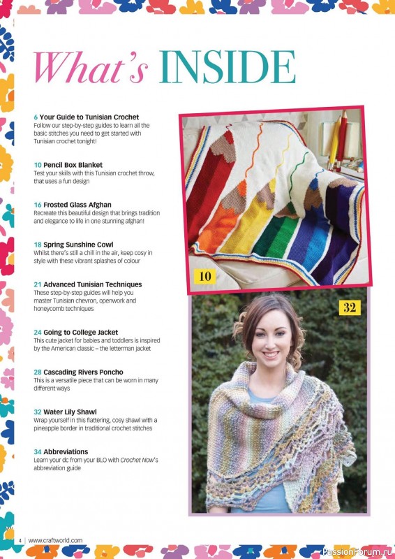 Журнал по вязанию крючком оригинальных и ярких моделей. Журнал для тех, кто хочет выглядеть стильно и оригинально и сделать уютнее свой дом. В номере модели одежды и аксессуаров для детей и взрослых, забавные игрушки, подушки, салфетки, коврики, уютные пледы и многое другое.