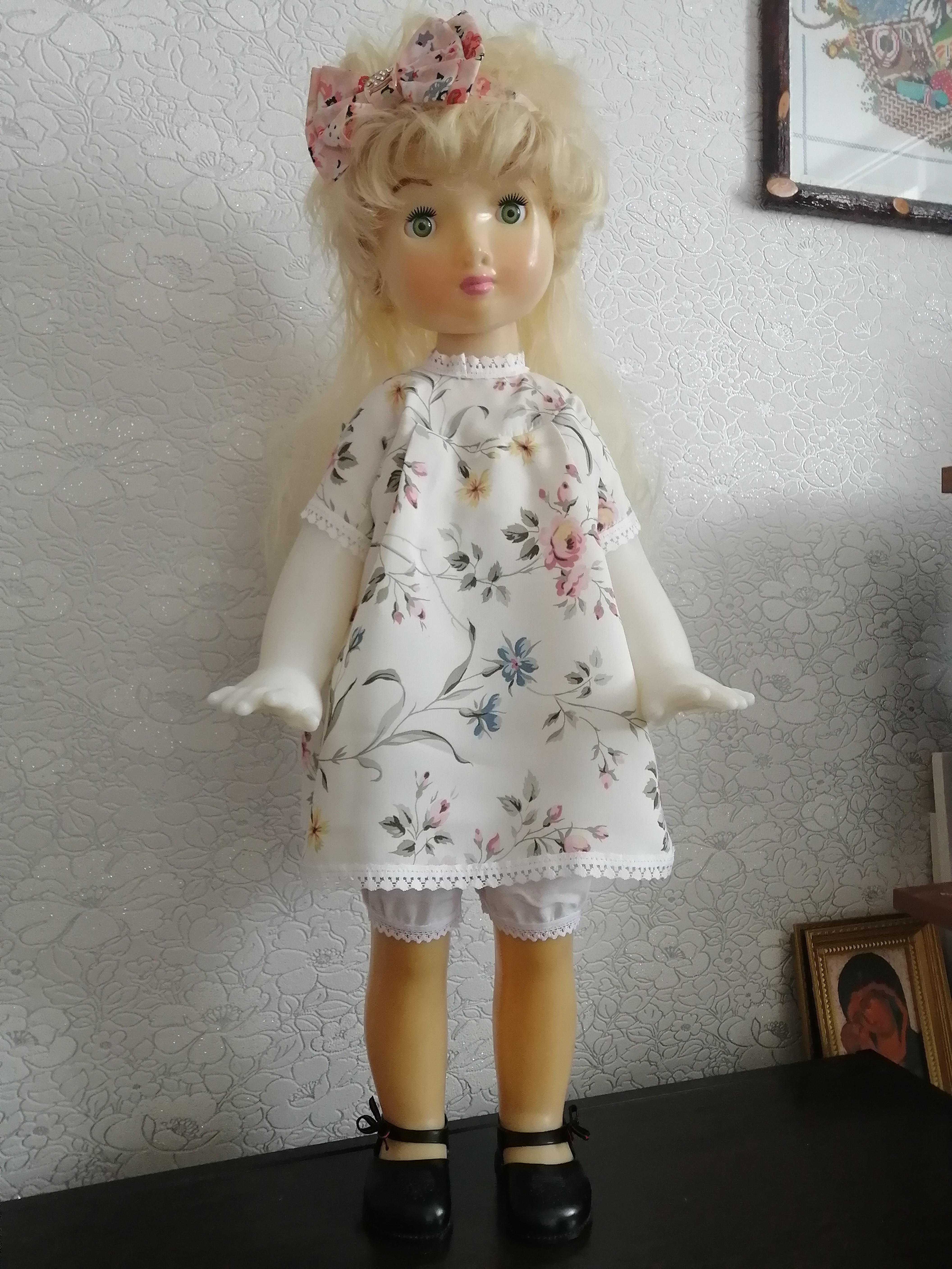 Добрый день) Спасибо за «заразу»)))Сразу хочу предупредить: восстановленная кукла не для игр, так как новая роспись и новая прошивка волос может не выдержать детских ручек… да и тело уже не той прочности… теперь" как": роспись акриловыми красками и сухая пастель, закрепляла лаком для мебели или лаком для волос, волосы прошивала сама готовыми трессами (очень долго и нудно), выкройки платьев, трусов и прочей одежды можно скачать из интернета в свою папку и там изображение увеличивать до нужного размера.Прежде чем что-то творить, я очень долго сидела в интернете и читала любую информацию нужного мне материала. ну типа: как прошить волосы советской кукле; как вставить глаза; смотрела мастер-классы по рисованию лица и перетяжки ручек и ножек...