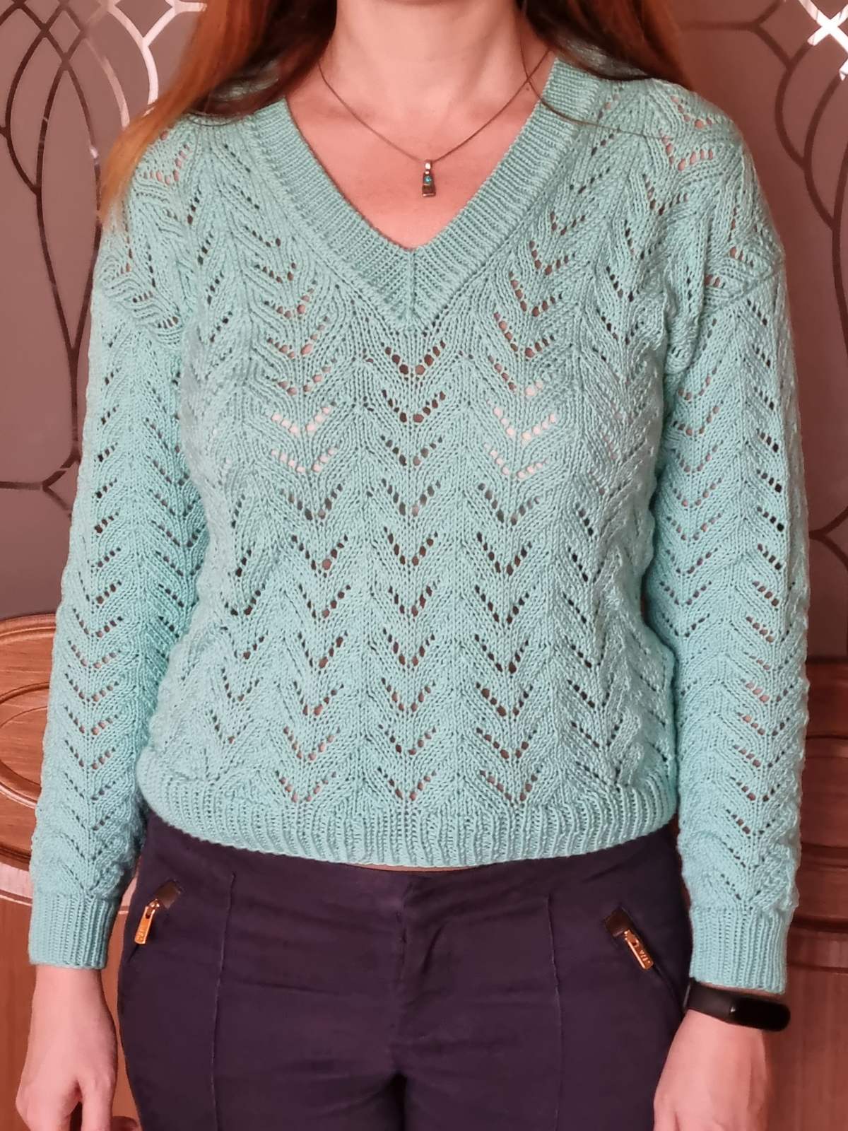Красивая кофточка, все очень аккуратно исполнено. Сидит на девушке отлично.