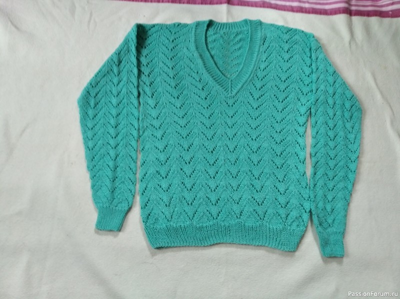 Татьяна! Очень аккуратный получился пуловер! Понравилось всё — и цвет, и узор, и очень классная получилась горловина, прям, как фирменная! Дочери очень отличный подарочек !