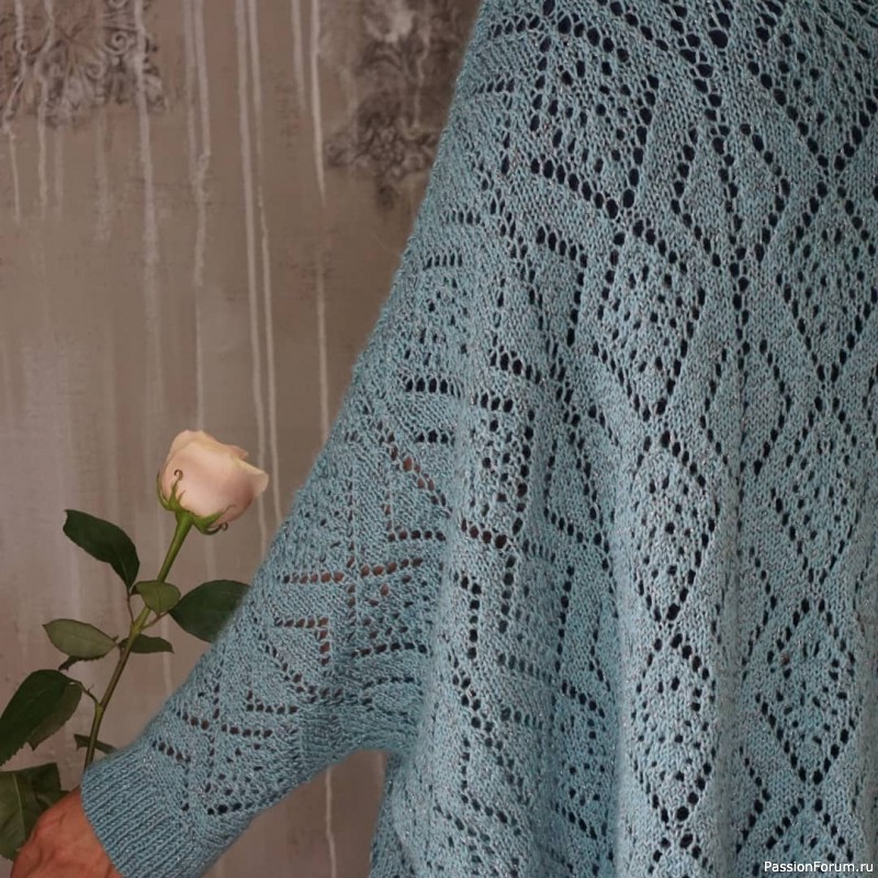 Красивое вязание, очень даже. Но вот о модели ничего сказать не могу - очень смахивает на «балахон» времён молодой Аллы Борисовны…Только не спешите меня «закидывать тапками», у каждого свой стиль и понятие его. Меня «зацепил» сначала цвет изделия в ленте, а когда стала рассматривать ближе, то и качество вязания, которое оказалось на высоте!
