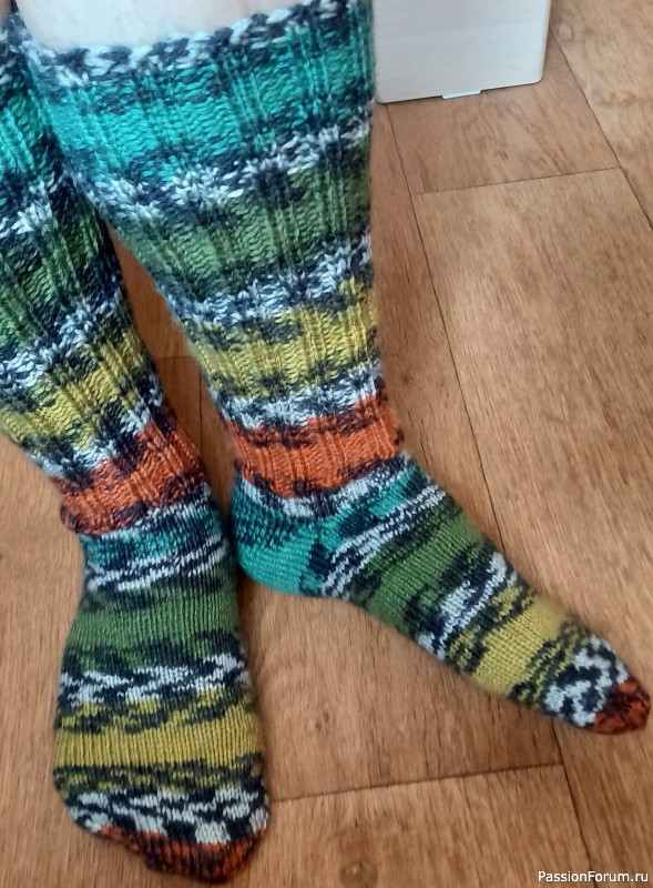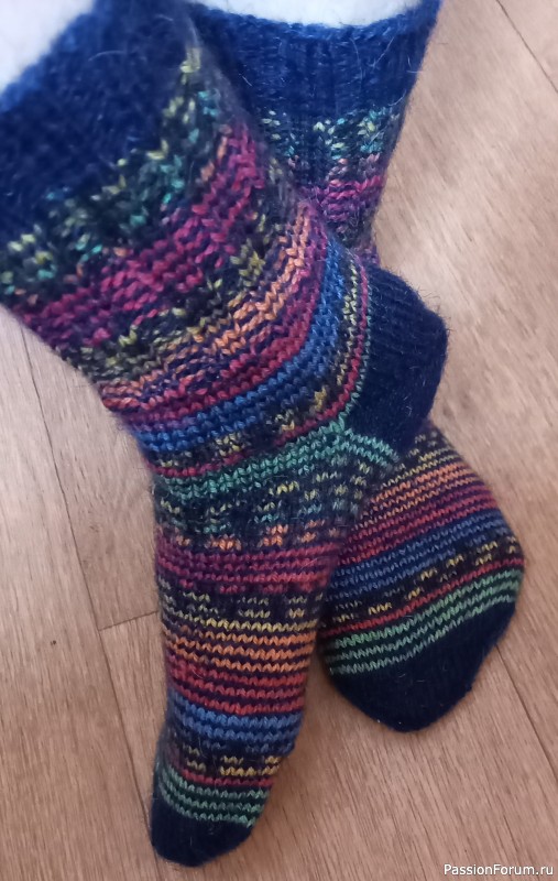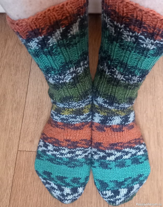 Лариса, клАссные носочки! Как вязать с мыска поняла, а вот с заменой ниток надо разбираться) Отличная утилизация остатков и вязать не скучно, это для меня)))
