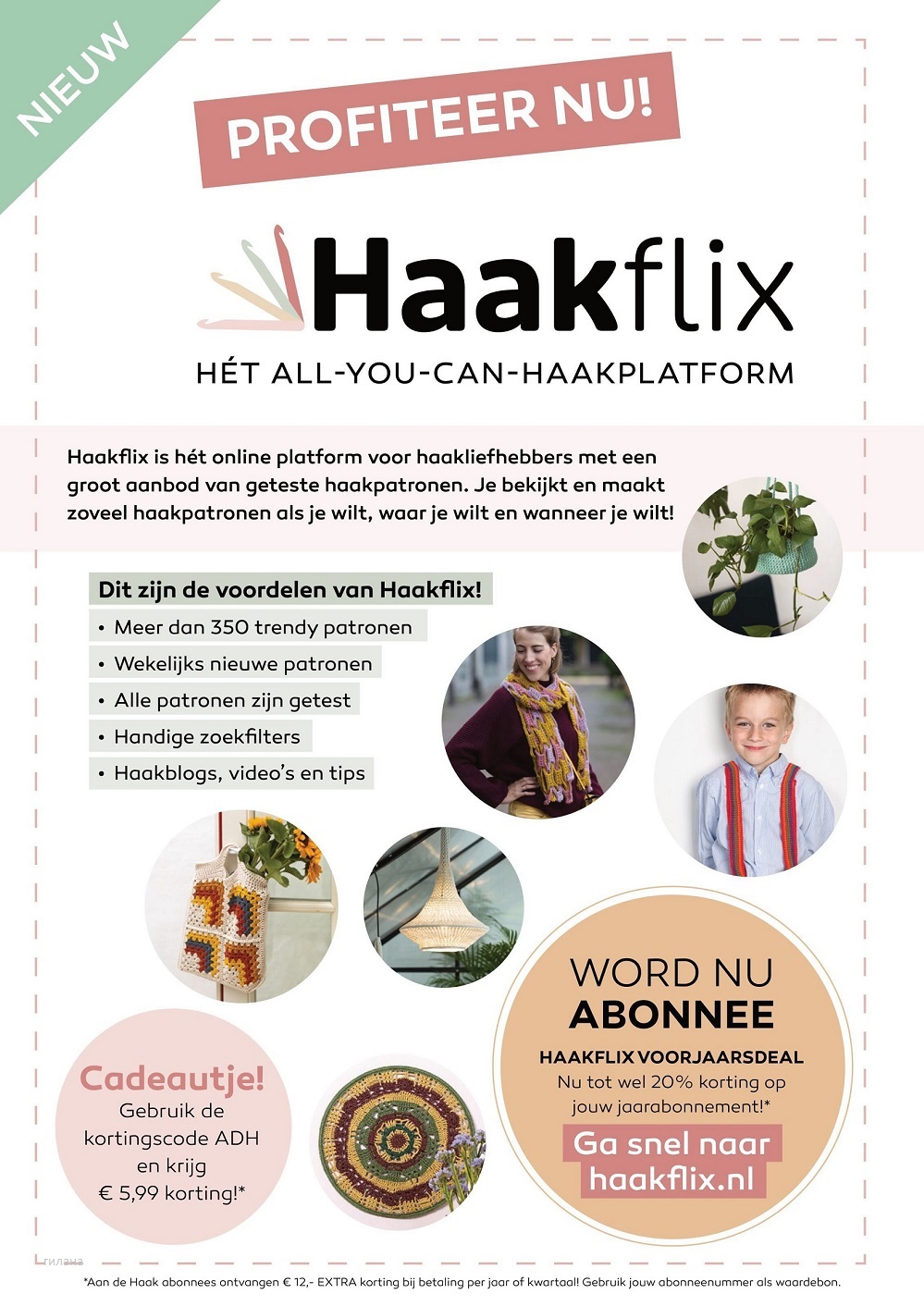 Aan de Haak - это журнал, который, как следует из названия, полностью посвящен вязанию крючком. Вы можете работать шесть раз в год с 84 страницами, полными забавных схем вязания крючком: от простых до сложных, от крупных проектов до небольших гаджетов. Совершенно новые проекты для дома, которые можно подарить и надеть.