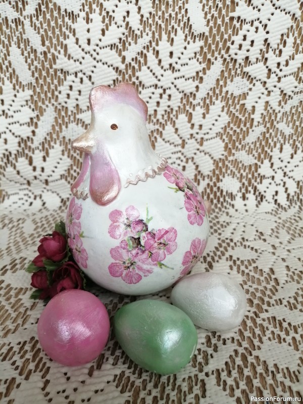 А вот эта курочка меня порадовала, хотя далась мне не легко. Я изначально хотела ее сделать под фарфор, но потом поймала бзик