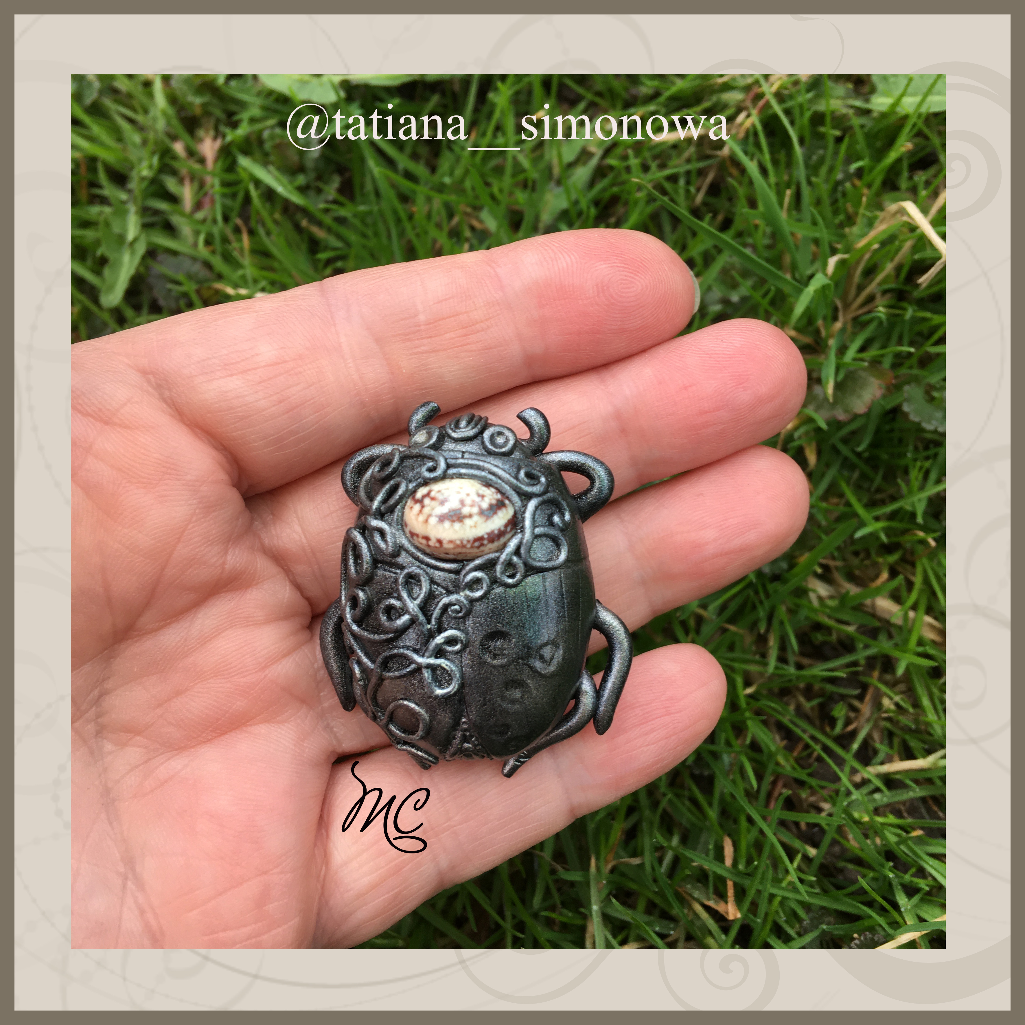 И снова здравствуйте! Сегодня снова жук из полимерной глины с яшмой. Брошь - булавка.