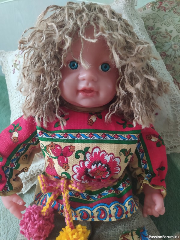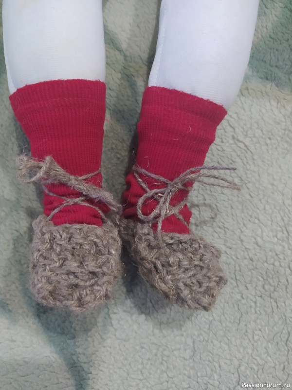 Вторая кукла очаровашка! Такой наряд получила, что душа радуется. Одни лапоточки и шляпка чего стоят! Очень изысканная работа, спасибо мастеру! Тоже для дома, пусть на видном месте красуется.