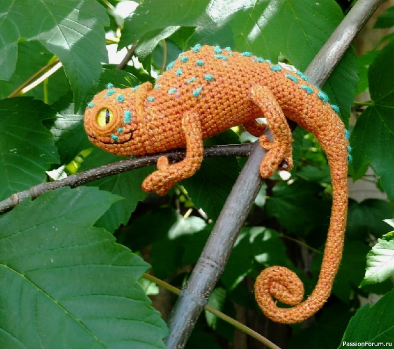 хамелеон по мк Виктории Ивановой.. Никак проектов пока не затеваю, но чтобы не бездельничать решила сделать вот такую игрушку. Давно хотела именно этого хамелеона, но все как - то руки не доходили. Очень удобно пристроился на углу монитора)