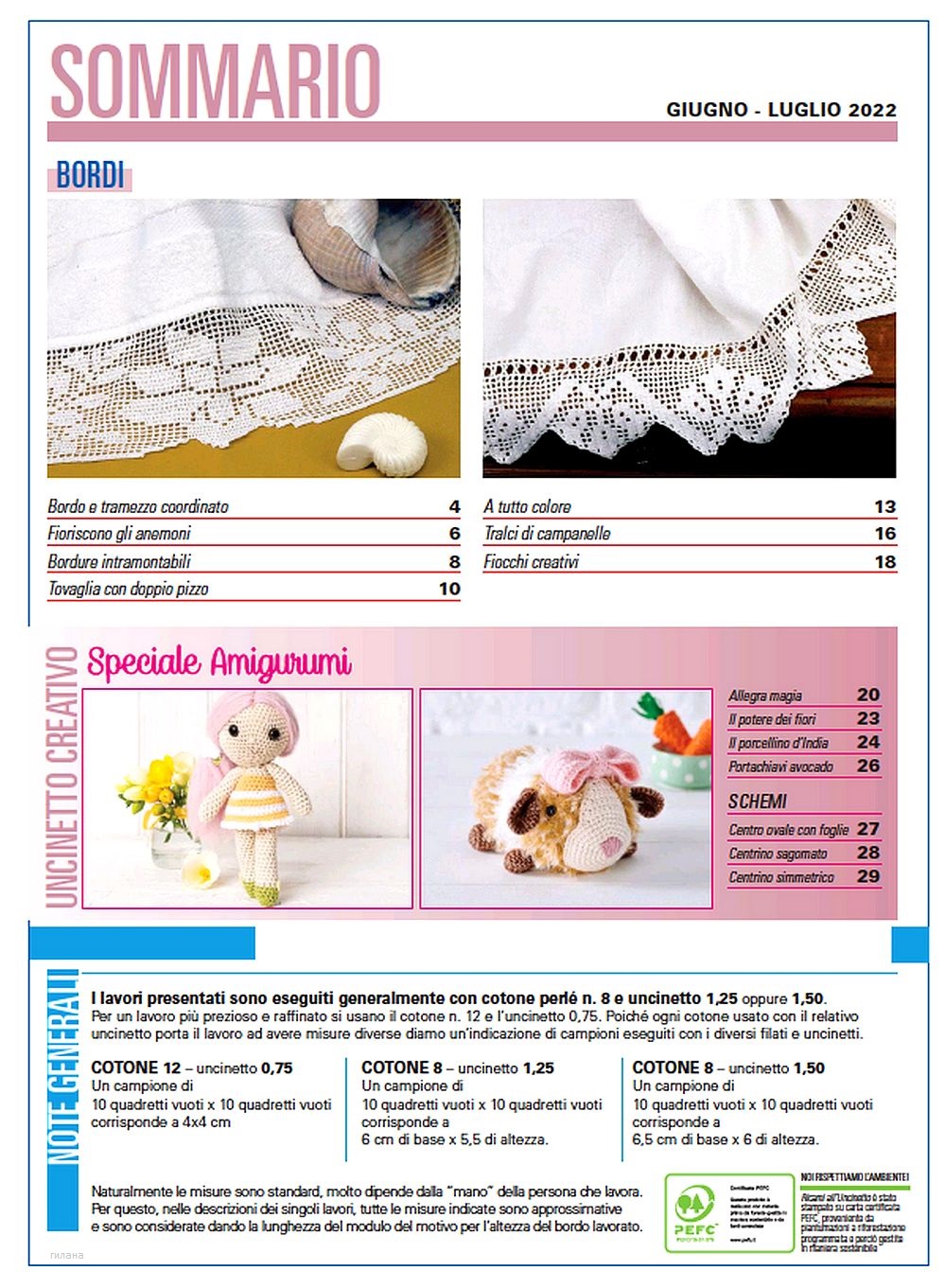 Итальянский журнал по вязанию крючком. В каждом номере проекты для создания уюта в вашем доме: занавески, скатерти, бордюры, салфетки, кайма, связанные крючком в филейной технике. Каждый проект сопровож-дают понятные схемы, описания, фотографии.