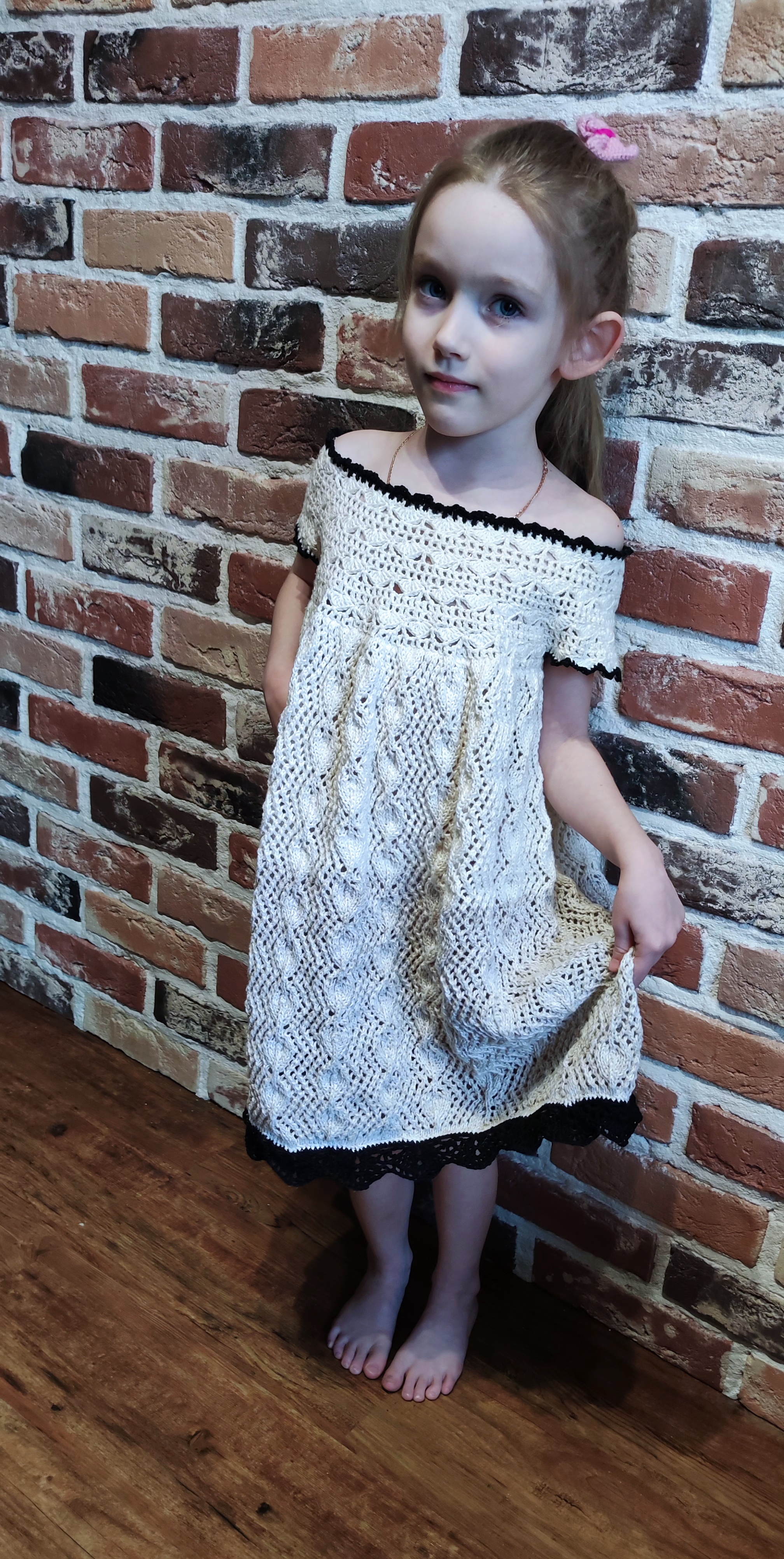 Привествую. Моя малышка попросила платье как у царицы))) вроде угодила 🙏. Кокетка крючком. Юбка спицами. Отделка крючком. Схемы( если загрузятся) прилагаются, ими пользовались 👌.