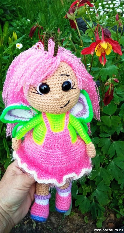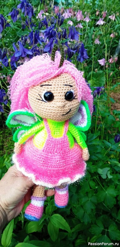 Симпатяга!!! ОЧень приятная бабочка… на гламур-тужур, а такая добрая и веселая! ОЧень хорошая куколка!!! Прям самой такую захотелось! а уж раядом с такой шикарной аквилегией вообще смотрится прям супер!