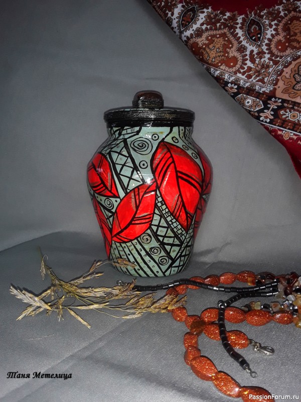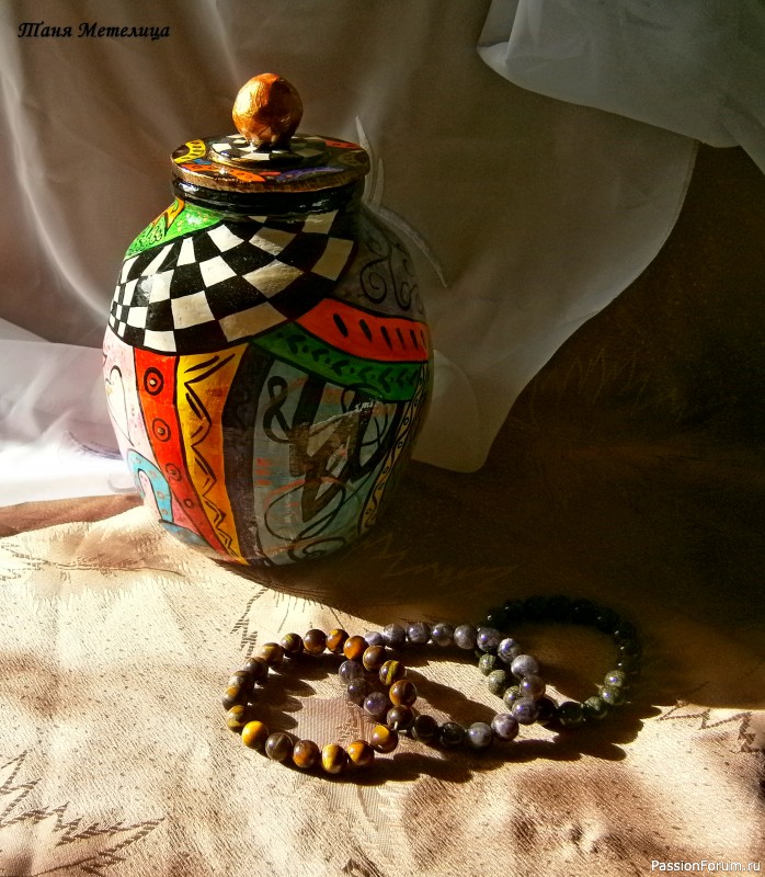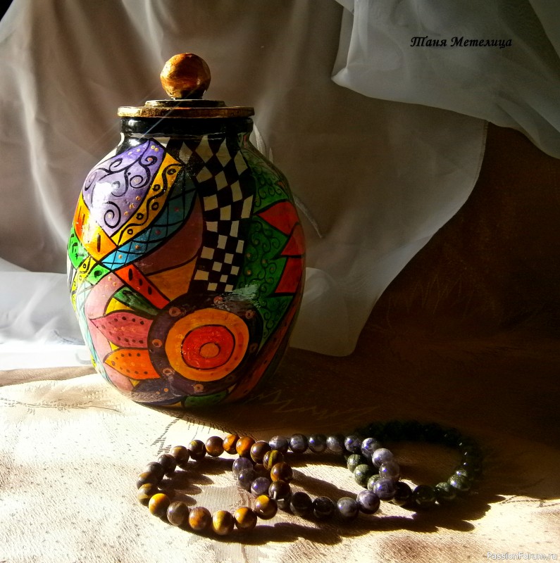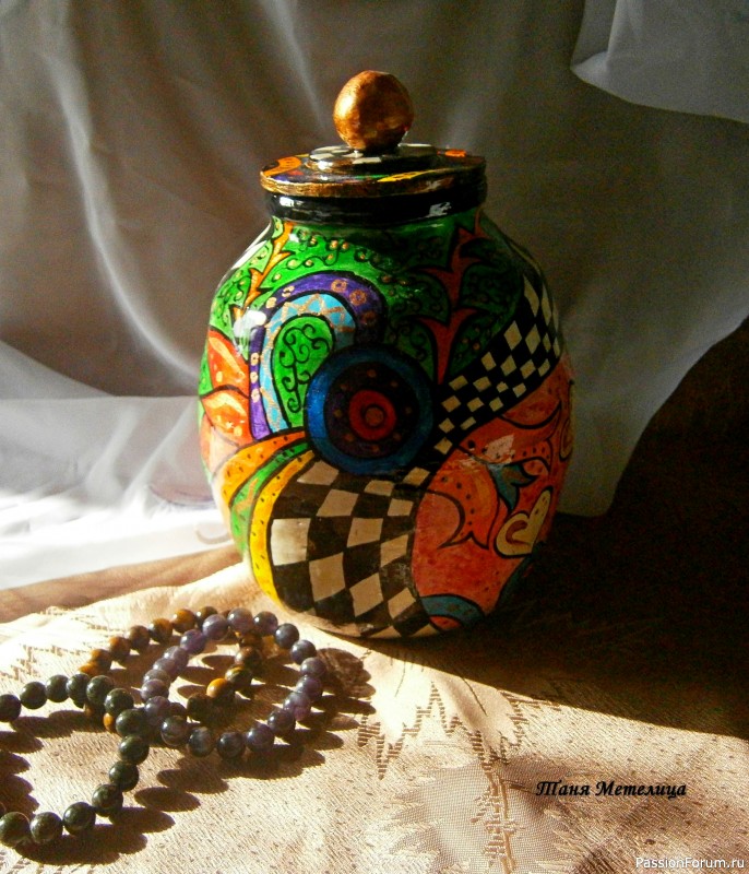 Спасибо большое, Галина, за отзыв!!! Стиль Mckenzie Childs не однозначный, нравится он не всем, а мне нравится))) А картины пишу только стиле живописи, ничего не могу с собой поделать))) орнаментальными и геометрическими узорами расписываю только мелкие предметы. Честно говоря, роспись — дело утомительное, на большие проекты не решусь.
