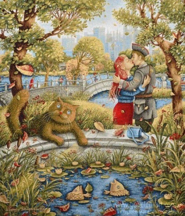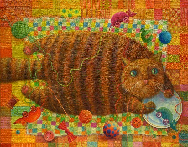 Художник Евгений Шишкин: сказочные гобелены с кошками.