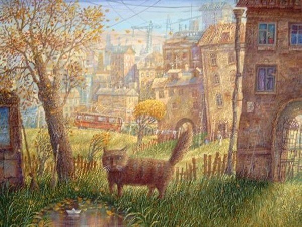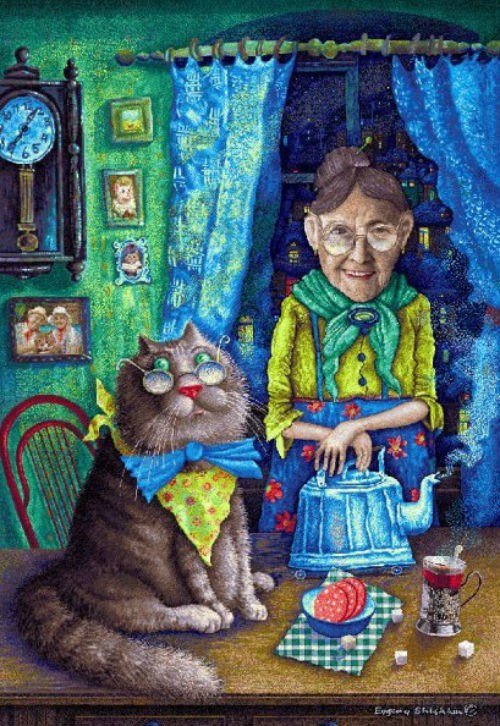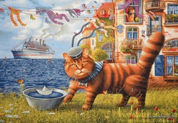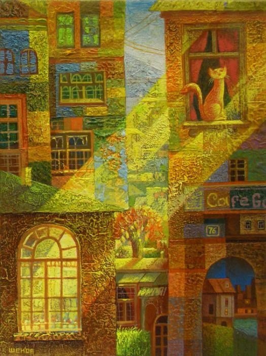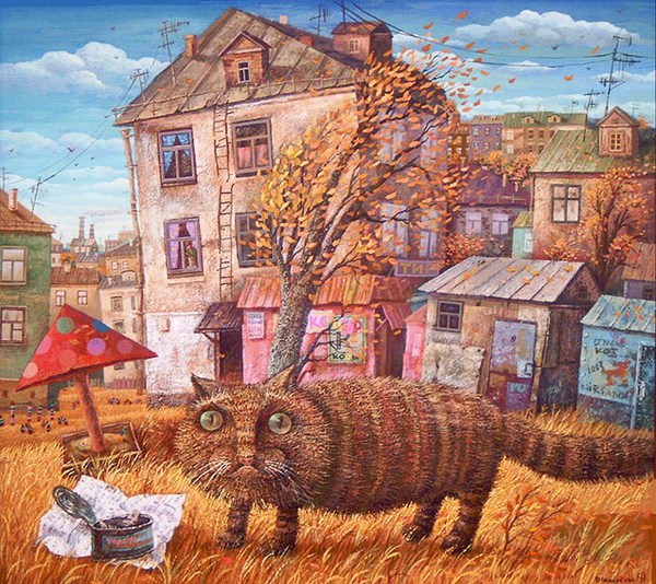 Картины очень понравились. Очень хорошо воспринимаются, приятные для глаза. Домашние, уютные. Поймала себя на мысли, что на всех картинах рассматриваю котов. Отвлекают на себя внимание. Визитная карточка художника.