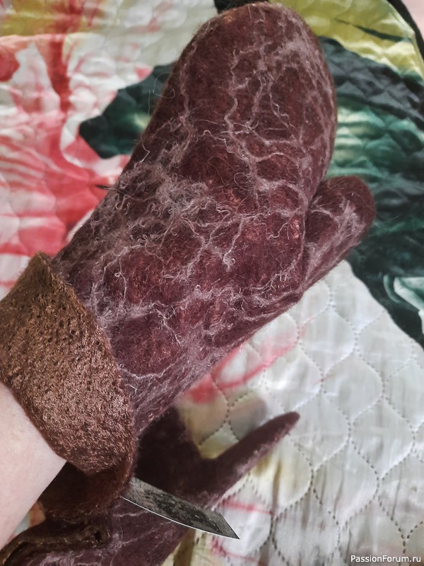 Нелли, варежки с прорезным декором хотите делать? Может быть я ошибаюсь, но считаю это не очень хорошей идеей.Мои аргументы таковы: 1. Для прорезного декора нужен толстый войлок, ведь один слой вырезаешь и еще достарочно прочный слой должен остаться. А толстые варежки — это не очень удобно. 2. Если даже с помощью блокераторов делать второй слой только на месте узора, то даже так получается непрактично: рукав одежды будет все время тереться об эти прорези, возможно цепляться за них. Разве это не так? Мое мнение, что одежда должна быть практичной, особенно практичными должны быть варежки. А для их красоты лучше использовать другие варианты декора.