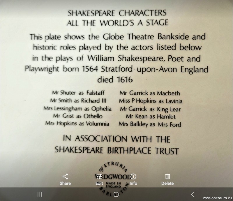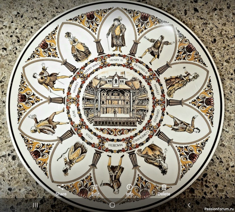 И снова рубрика: " Всего одна, но какая!". И на этот раз замечательная декоративная тарелочка от знаменитой английской компании Wedgwood! Ну какая ещё компания, как ни эта может создать такой шедевр! Итак, тема : герои исторических пьес Вильяма Шекспира. 10 пьес-10 характеров, 10 незабываемых историй на одной декоративной тарелочке! Добро пожаловать в высокий мир классического театра!