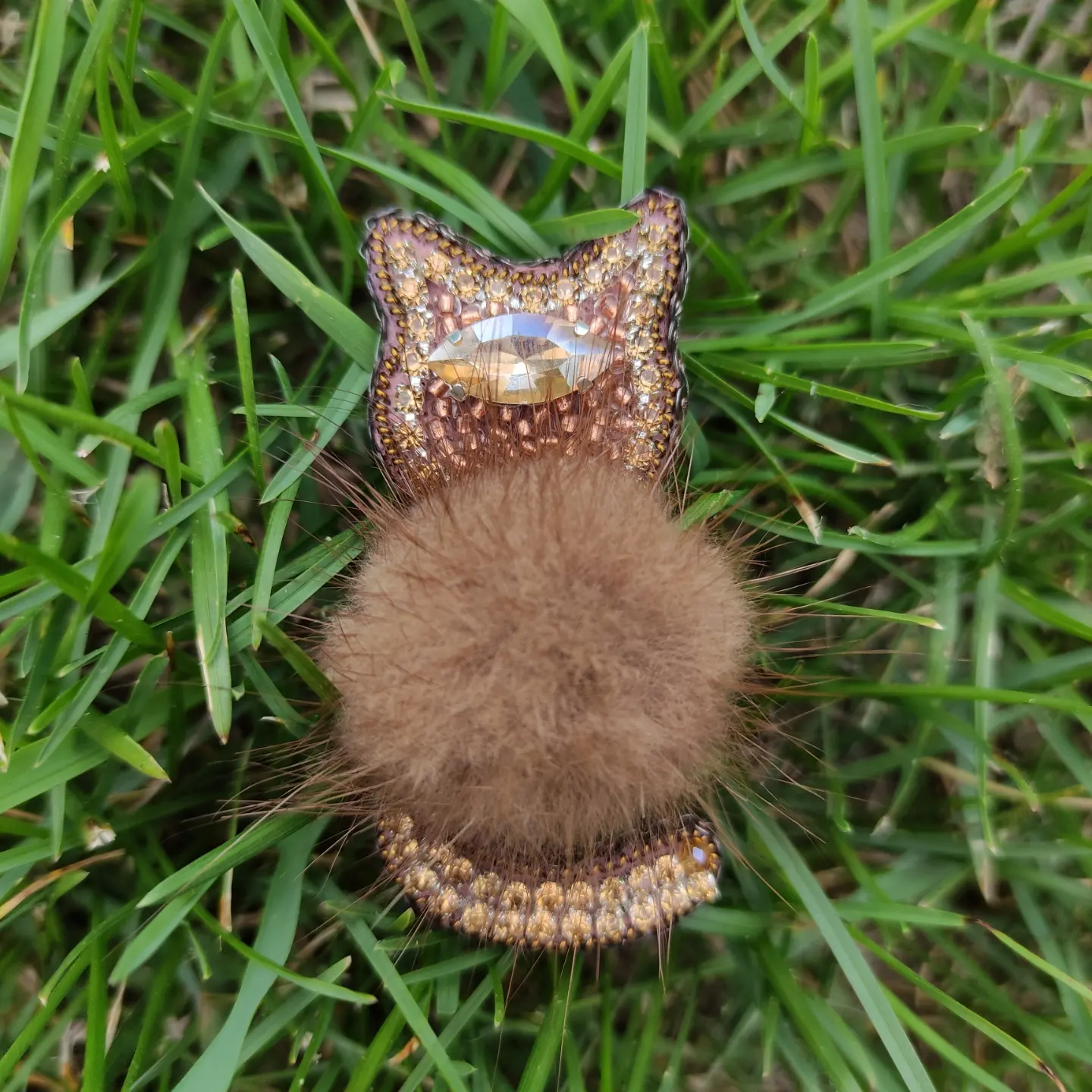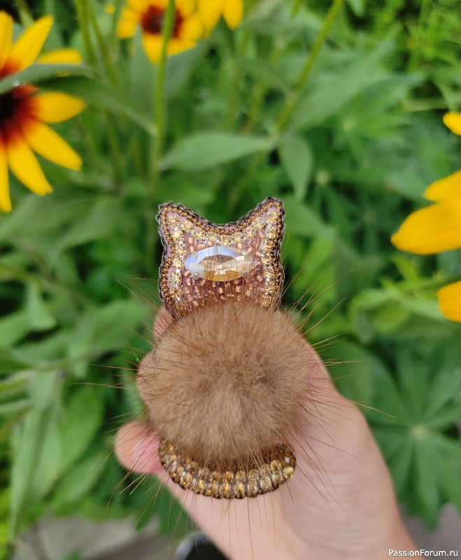 В след за брошью зайчика решила создать брошь котика)! Размеры 6*3,2см. Использованы мех норки, стразовая цепь, бисер. Изнаночная сторона -кожа, булавка с круговым замком!