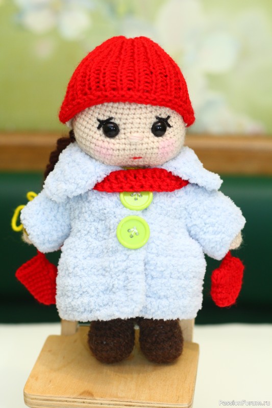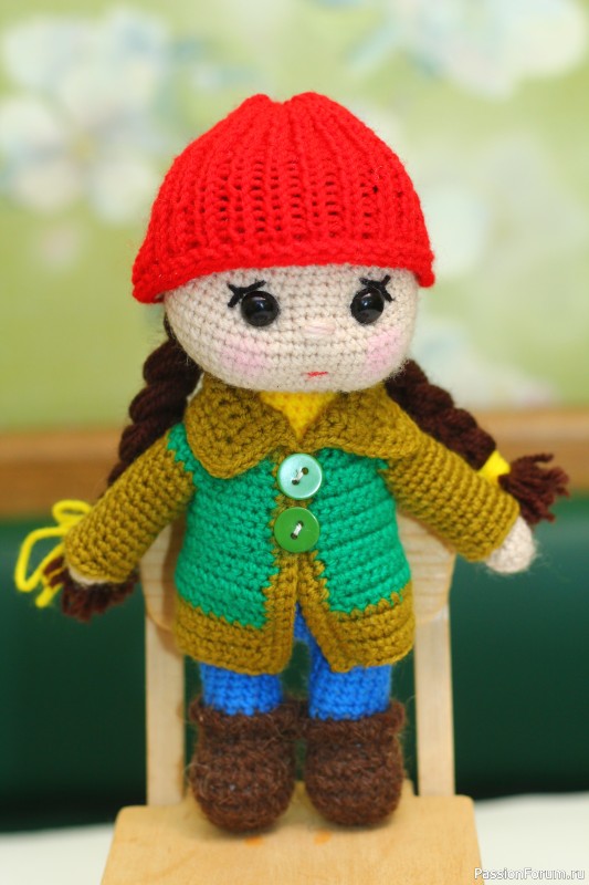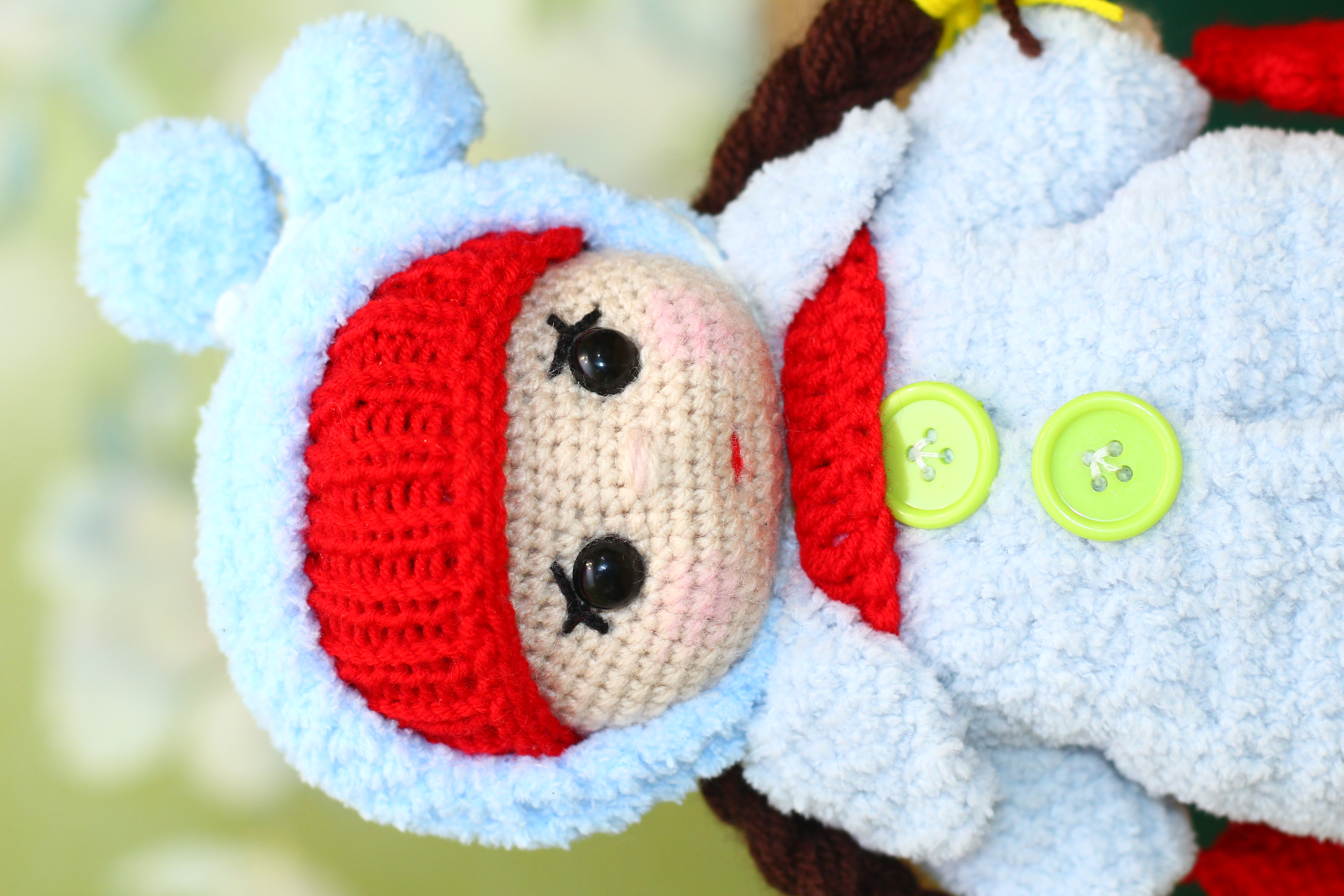 Вязала моя любимая сестричка. связала и себя и меня) Есть у нас детское фото, где мы в таких шапочках) Очень люблю эту куколку, она всегда со мной)