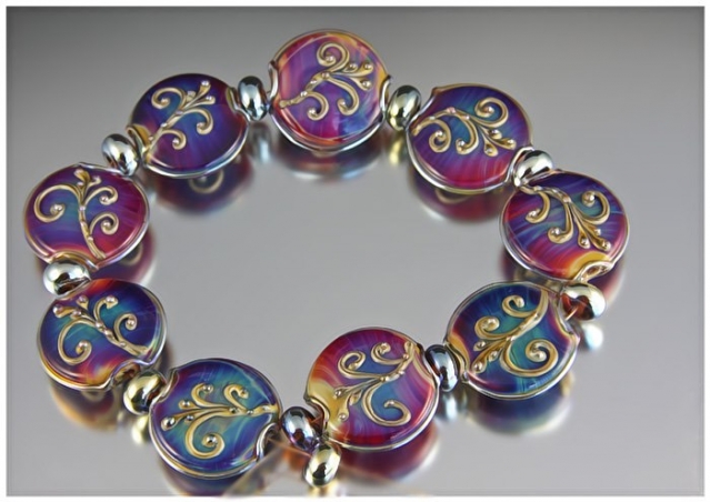 Лэмпворк-работы мастера из Канады Шари Слонски. По одним данным,ремесло это зародилось на территории Древнего Египта более 4000 тыс.лет тому назад. По другим данным-возраст первых стеклянных бусин,обнаруженных в южной Месопотамии,составляет около 30 тысяч лет. Постепенно стеклоделие захватило весь мир: Финикию,Рим,Элладу,арабские страны,Китайскую империю.Наибольшего мастерства достигли итальянцы.Слава о венецианском стекле распространилась далеко за пределы города и государства в целом. Лэмпворк-"работа с лампой", техника и искусство создания стеклянных бусин посредством плавления стекла в огне газовой горелки. Спасибо автору прекрасной подборки-Марии Кирилловой, и конечно же мастеру Шари Слонски.