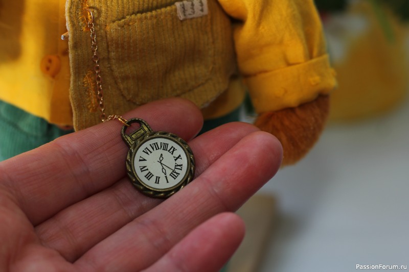 Часы как то давно покупали в рукодельном магазине, это подвеска. Купила цепочку , она оказалась с нужным фиксатором, буквой Т, чтобы крепить к жилету. Муж немного уменьшил этот фиксатор. Изучила в интернете, как носить карманные часы) Книгу с рецептами сделала из маленького блокнотика и обычный переплет из ткани.