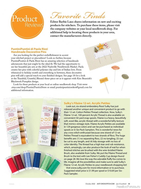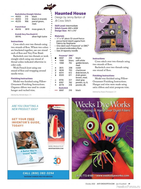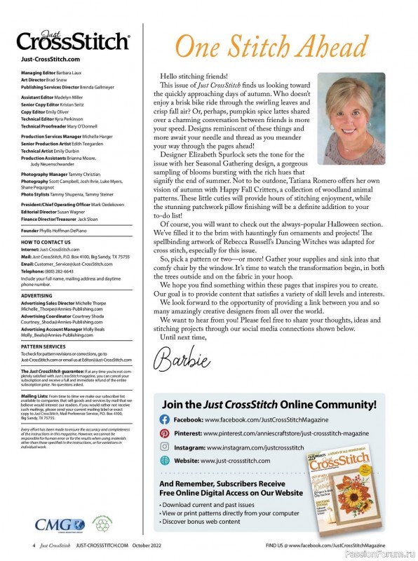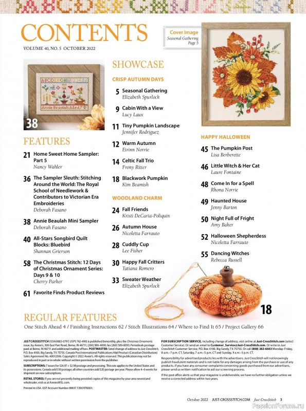 Коллекция вышивки в журнале «Just CrossStitch - October 2022»