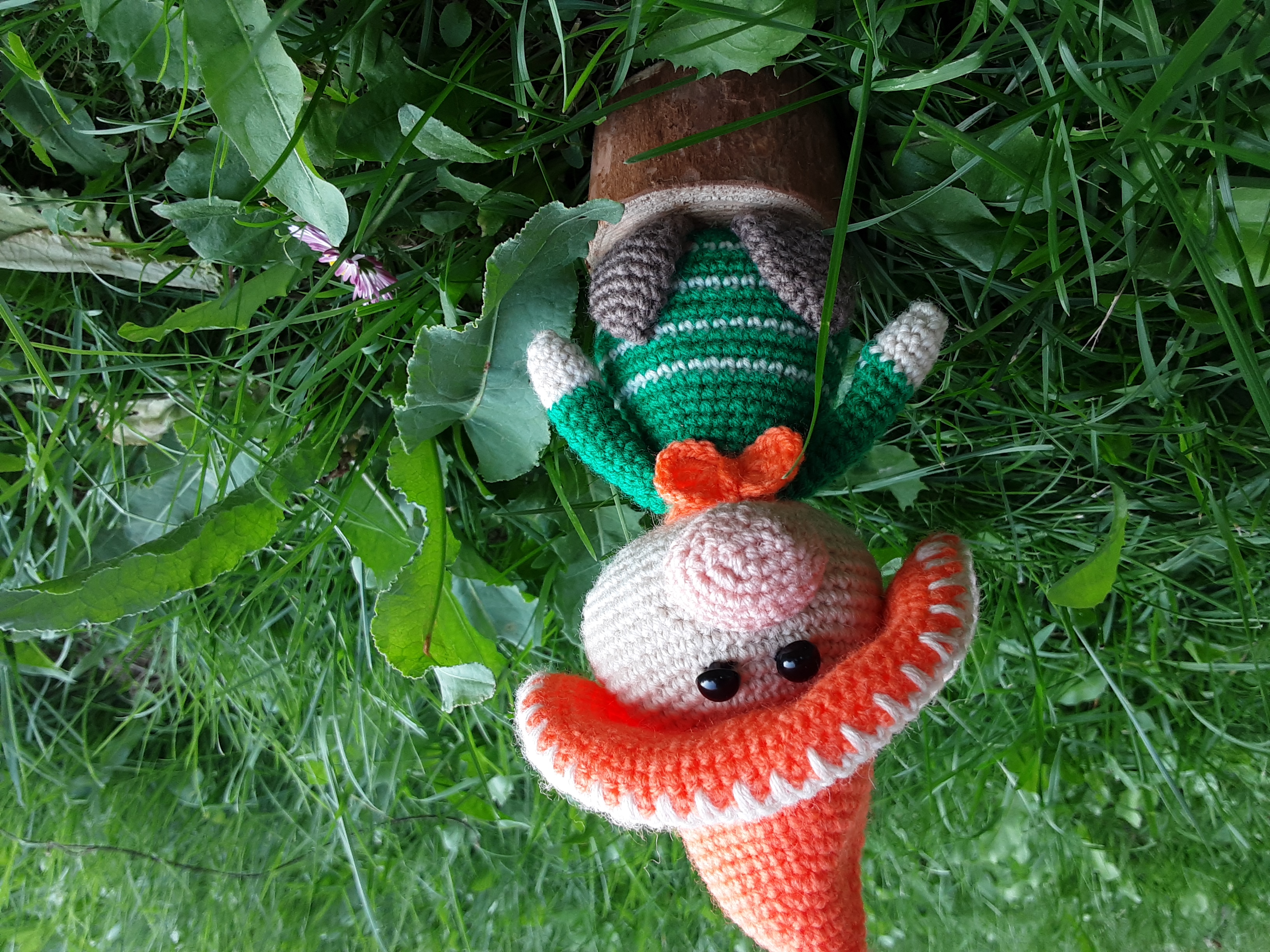 Чего-то мне твой замечательно связанный гномик очень сильно напоминает поросенка Фунтика)))) Прям вот «сдавайте денежки на домики для бедных поросят»))))