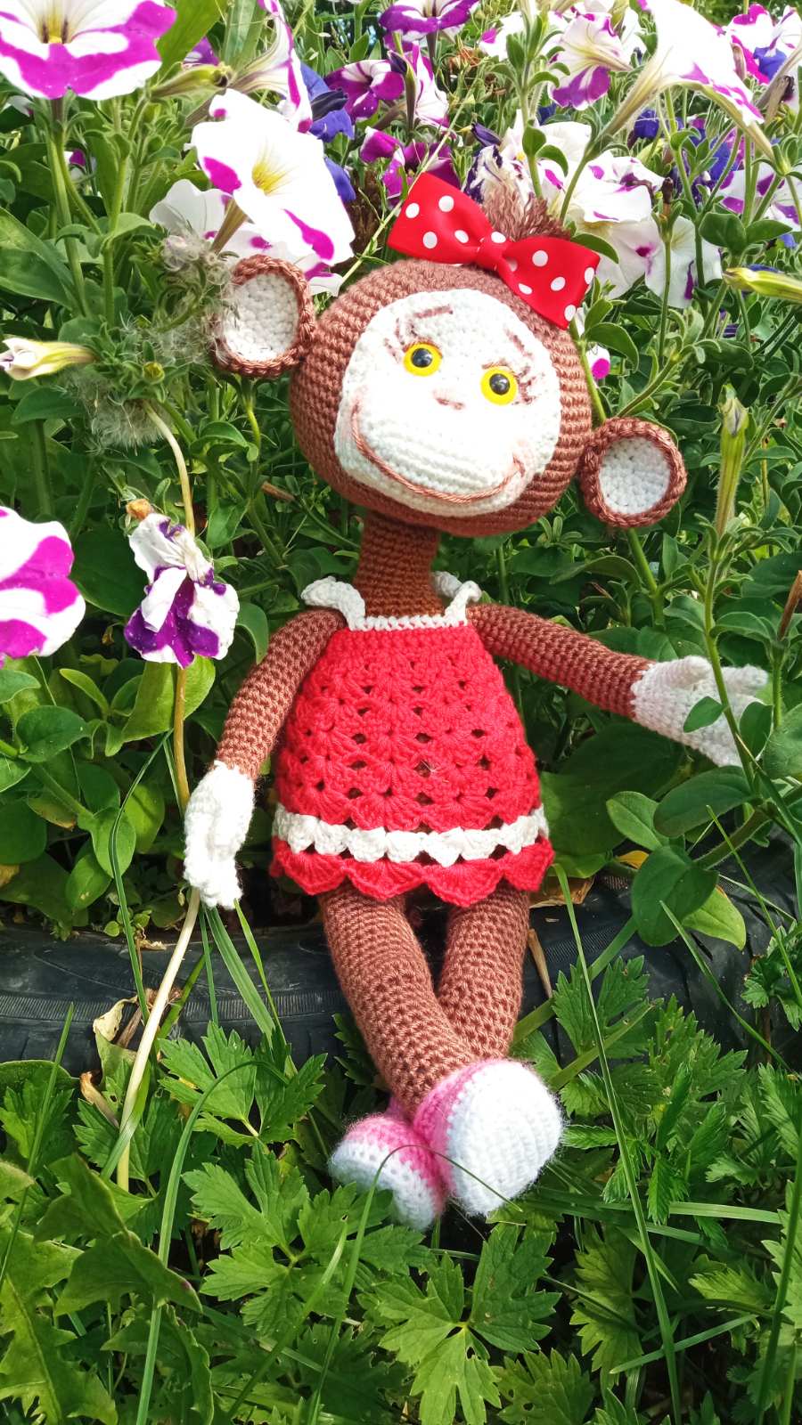 Игрушки никак меня не отпускают, увидела обезьянку и не смогла пройти мимо. Вязала по МК Елены Пешехоновой и группе В гостях у Сказки, которые организовали июльский марафон https://vk.com/nasha_ckazka