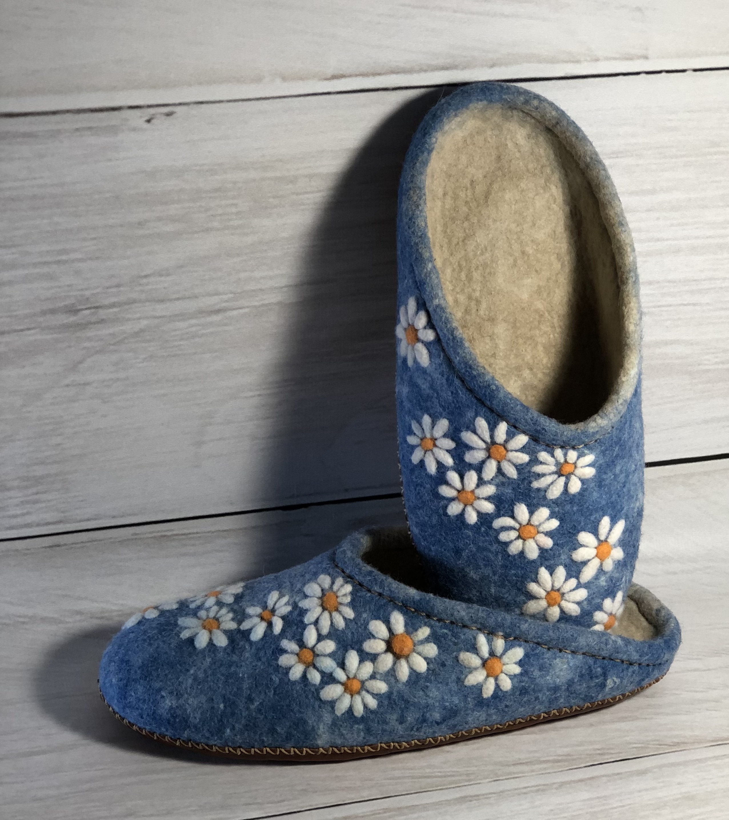 Цвет тапочек с эффектом патины, навеял именно ромашки…