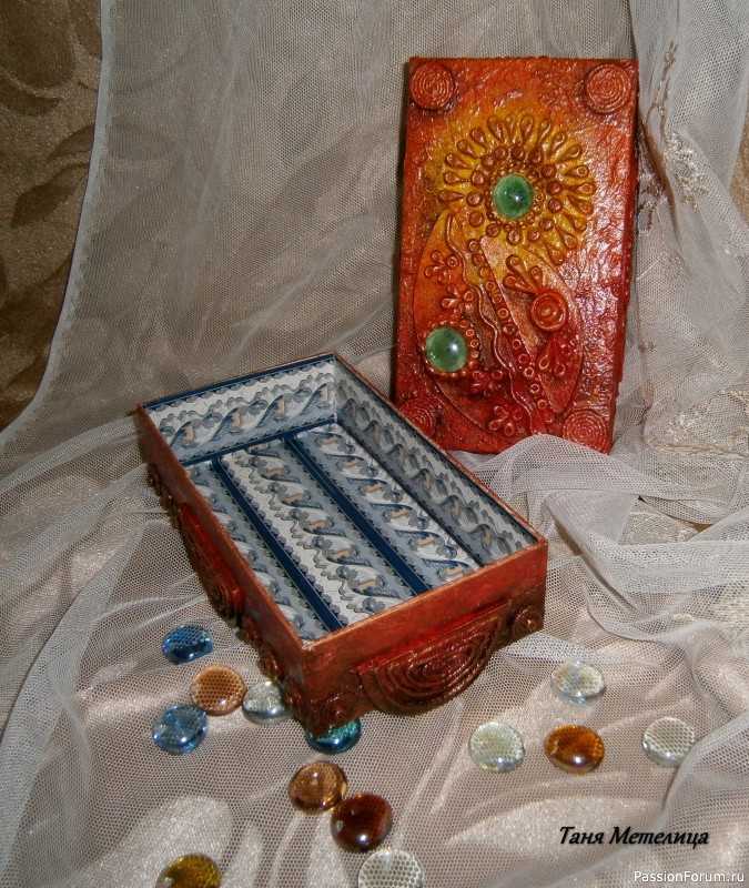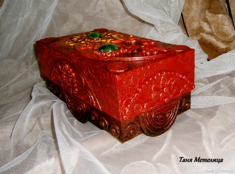 Танюша, шкатулка получилась изумительной красоты — и цвет, и жгутики, и камушки зеленые, и внутри красота!