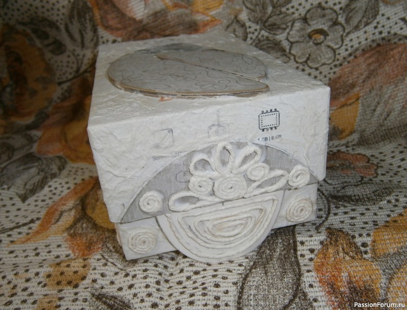 хорошая работа.У меня несколько лежат таких коробочек, пока не придумала как их использовать Шкатулками не пользуюсь.