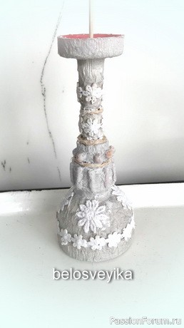 Подставка собрана в такой последовательности: внизу обрезок от 0,5 л пластиковой бутылки,набила бумагой и вставила отрезанной частью в пластиковую крышку,приклеила.В пробке сделала отверстие, накрутила её на бутылочный обрезок,вставила деревянную шпажку.Далее надела прозрачную крышечку от лекарственной бутылочки, далее 2 деревянные вытянутые бусины(это когда то были такие автомобильные коврики на сидушки) Далее пробочка от зубной пасты и крышка пластиковая красная.Вот из таких "хомячьих запасов" и собрана эта подставка.