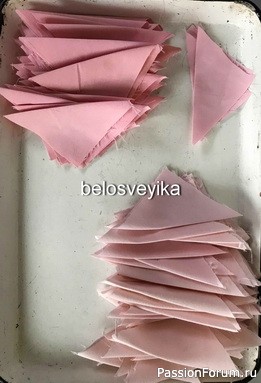 Нарезала квадратики 8*8 см.Сложила по диагонали и каждый приутюжила