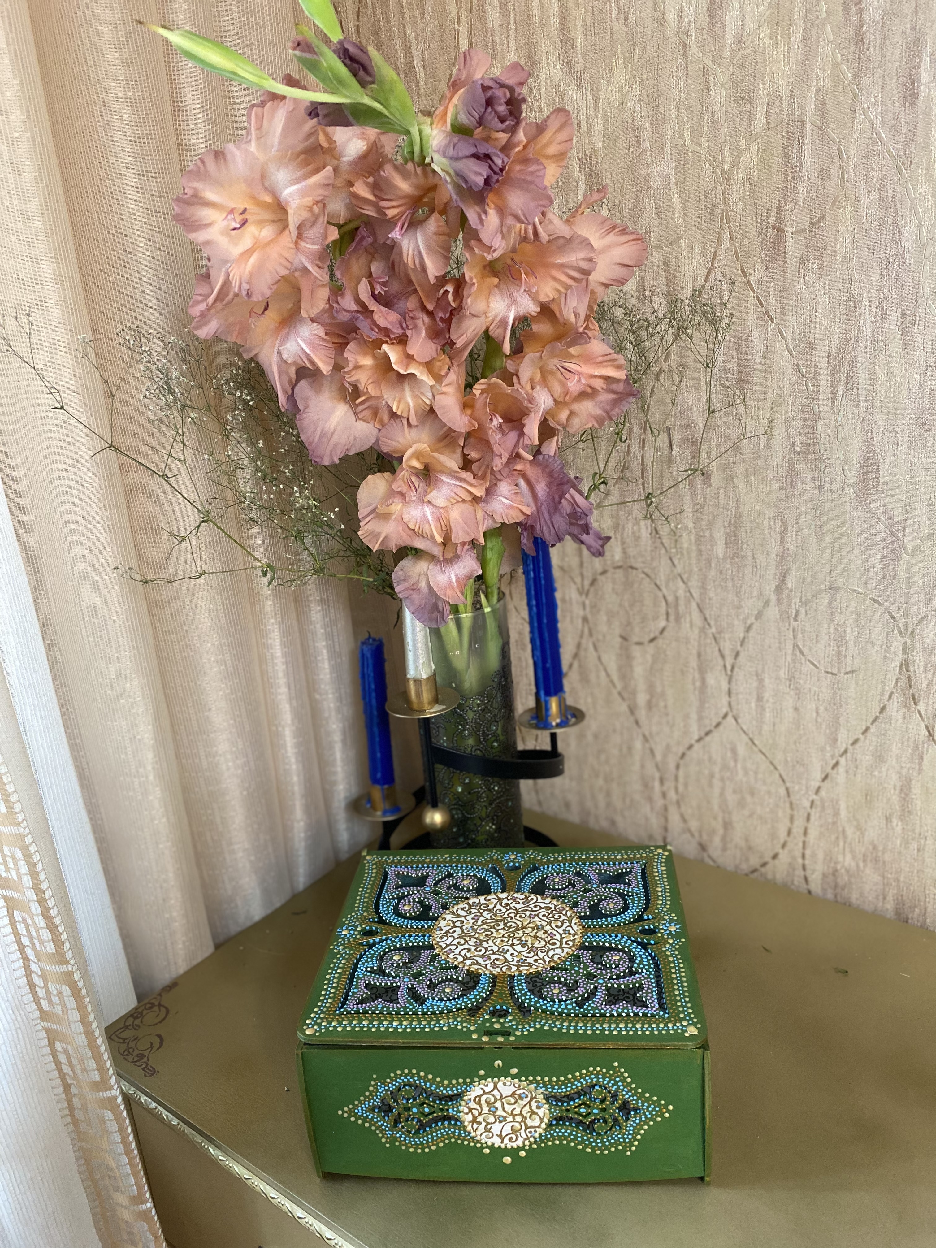 Люблю точечную роспись! Красивая шкатулочка, аккуратные точечки, хорошо сочетается точечный рисунок с трафаретом. Браво!