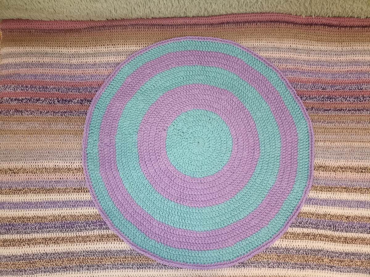 Мятно-сиреневый круглый коврик крючком