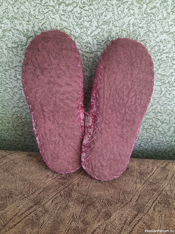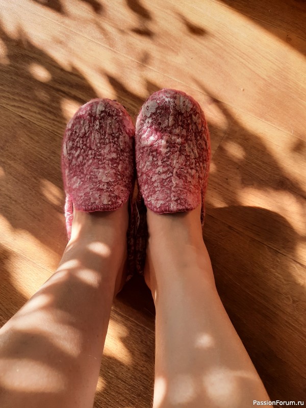 Здравствуйте мои дорогие,поизносились мои тапочки,но все в наших руках...сваляла новые.