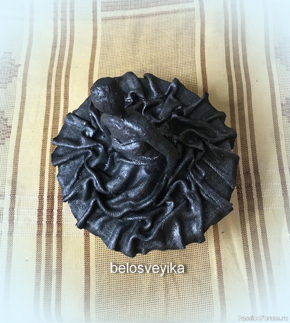 Добавила во второй раз серебра,особенно внутри складок.Покрыла сверху лаком.