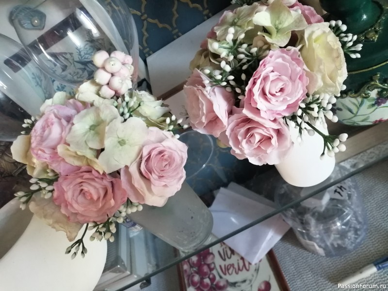 А рукотворные композиции так же редко привлекают, по этой причине у меня не осталось ни одного букетика. Я, если честно, не очень понимаю этот вид творчества, что потом со всем этим делать, если только иногда для каких то сувенирных подарочков!!! В приоритете у меня все же декупаж и валяние. Сейчас подписалась на одну группу по декупажу и понимаю, какой я младенец в этом деле