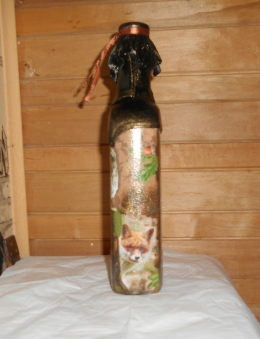Валюша, работы твои все разнообразные, но необыкновенно интересные. Очень нравится сочетание декупажа с кожей. У тебя всегда такие красивые «банданы» на бутылочках получаются, любо-дорого посмотреть!