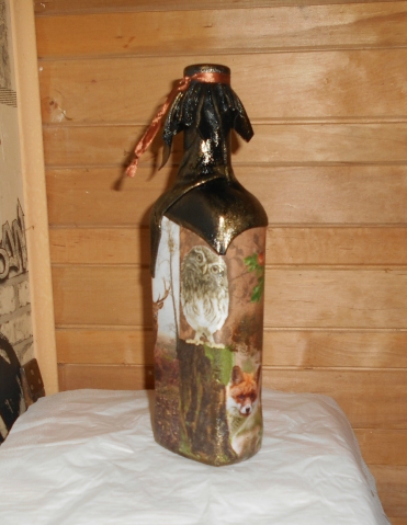 бутылочки — такие классные, и предыдущая, и эта, комбинации кожи с декупажем очень удачные, Вы- мастер по бутылочкам!