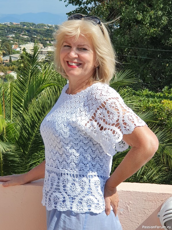 Марина! У тебя очередной шедевр! Какая чудесная блуза! Тебе очень идет. А кружево — Чудо!
