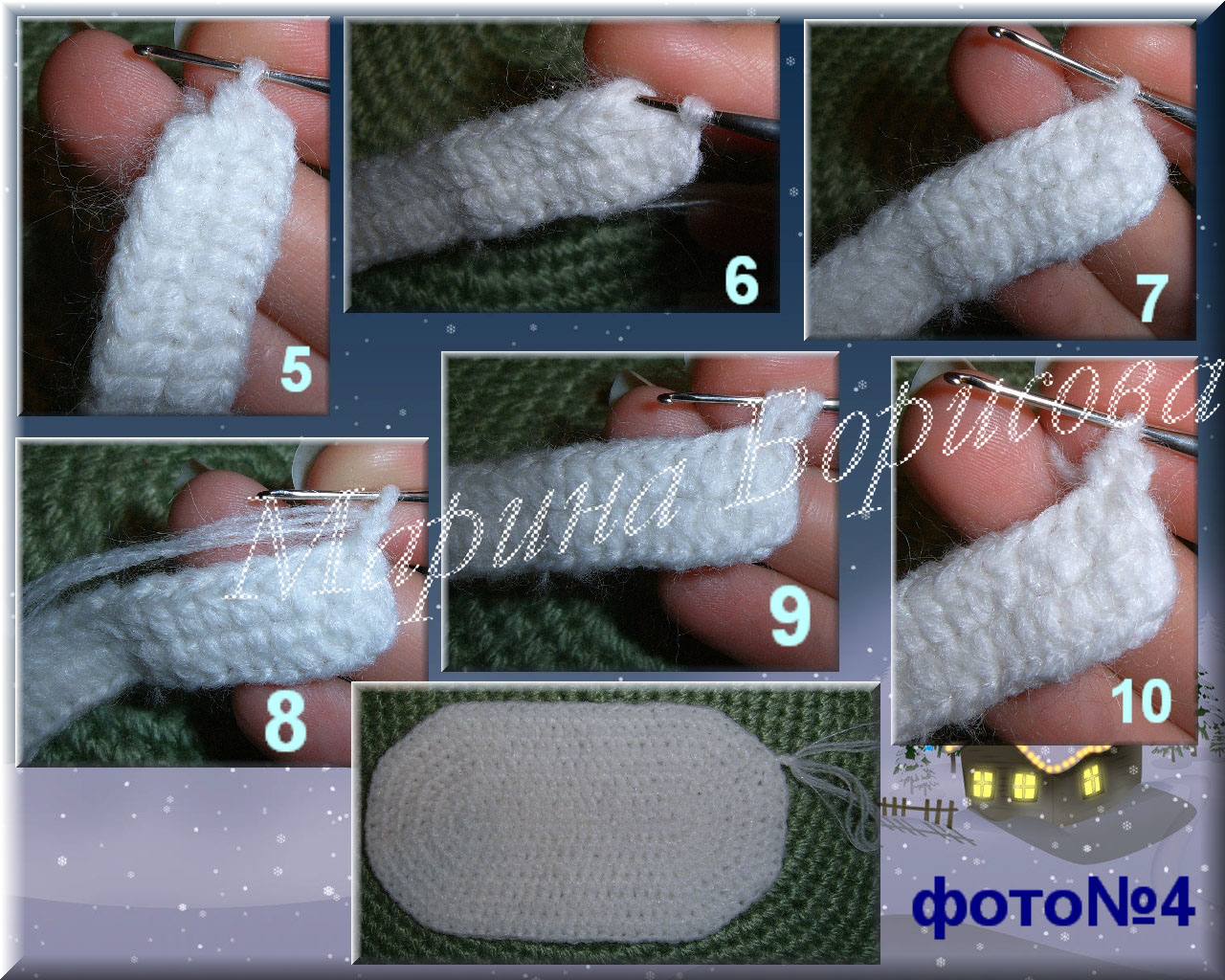 Белой нитью (1 деталь) вязать по спирали полустолбиками с накидом