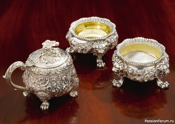 Горшок для горчицы и солонки из серебра в стиле рококо, Пол Сторр, 1825 г.
