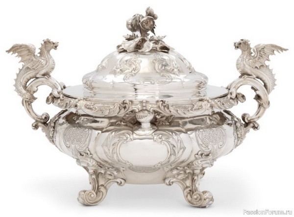 Супница из серебра, украшенная драконами, ширина 45 см, Пол Сторр, 1838 г.