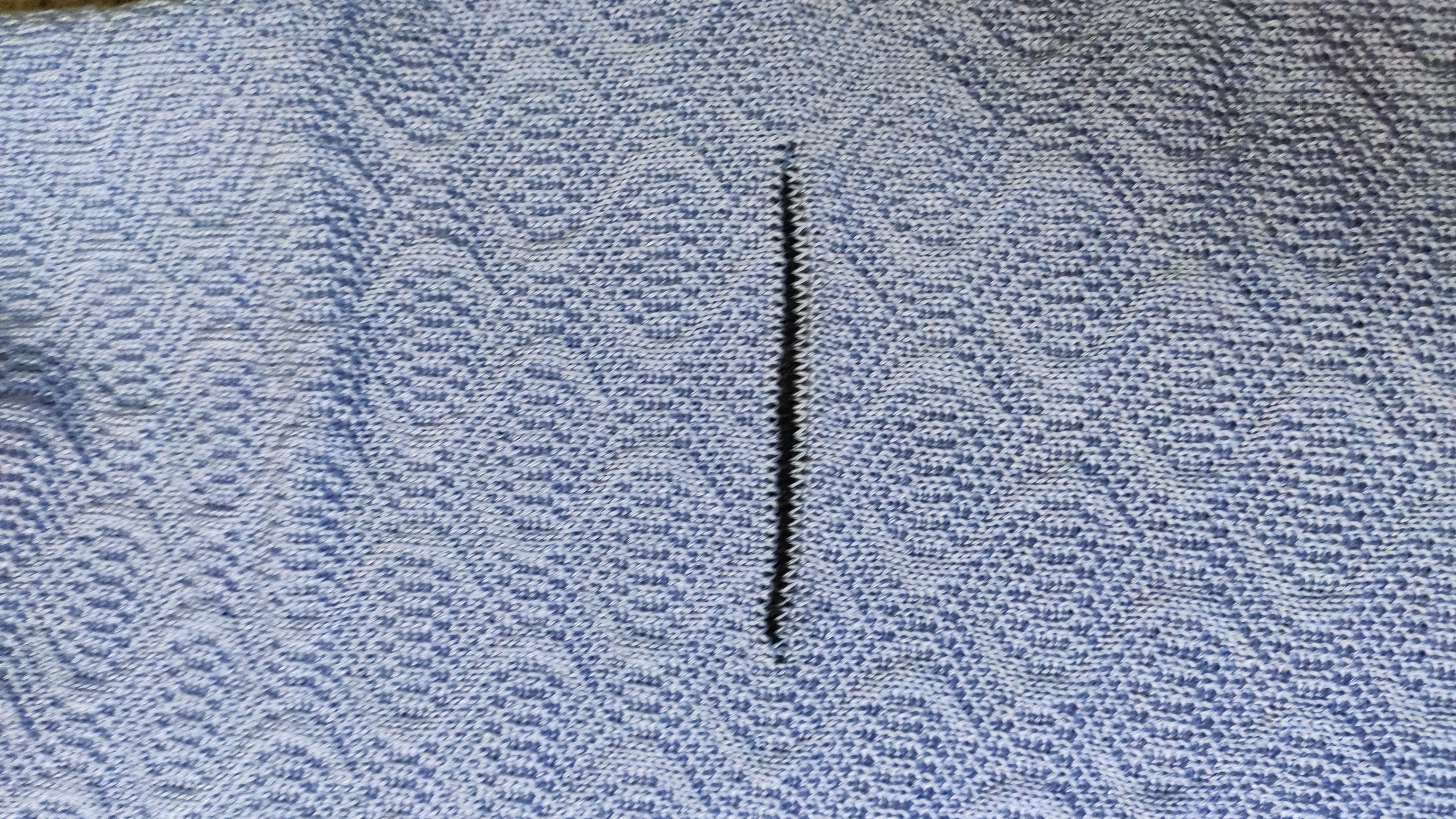 Кардиган выполнен из Слонимской полушерсти 32/2 в 2 сложения на машине 5 класса. Переплетение - рельефный жаккард на плотности 3/3. Работа усложнена прорезными карманами, цельновязанной планкой с прорезными петлями для пуговиц. На изделие ушло 800 грамм пряжи.
