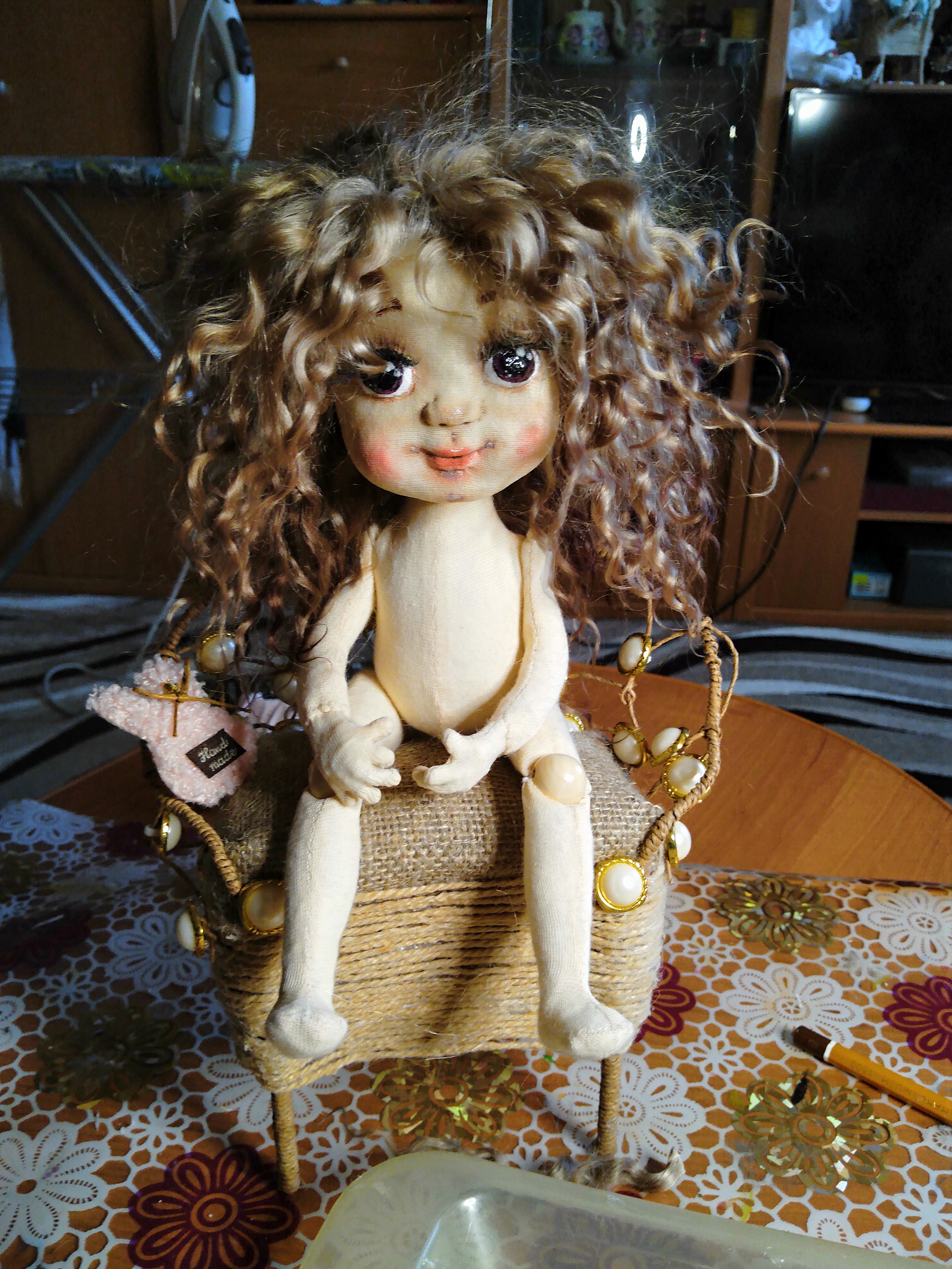 Елена!!! Куколка хорошенькая.Но вот щечки сильно" нарумянили".Грубо смотрится.Это же малышка!!! А теперь-наряжать надо!!!
