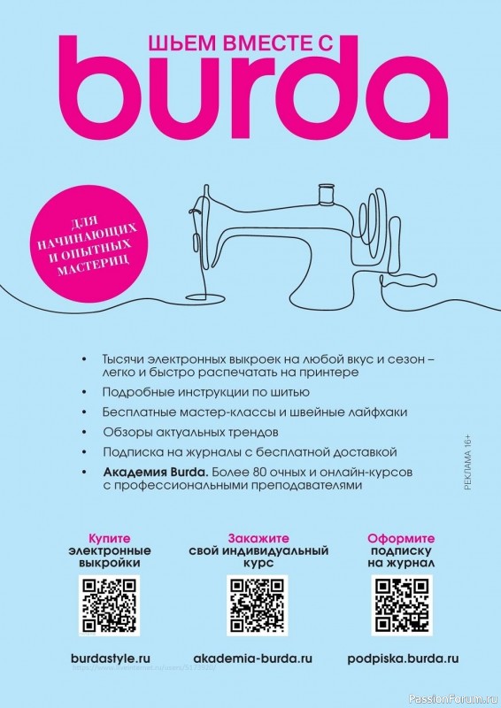 Российская версия известного французского журнала поможет создать модный трикотажный гардероб для всей семьи. Журнал представляет стильные сезонные коллекции: весна, лето, осень, зима. Все модели сопровождаются подробными инструкциями, точными схемами и выкройками, имеют широкий размерный ряд - от S до XXL для взрослых и для детей от 0 до 14 лет.
